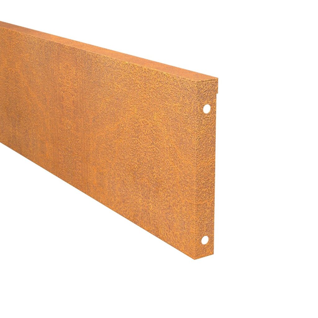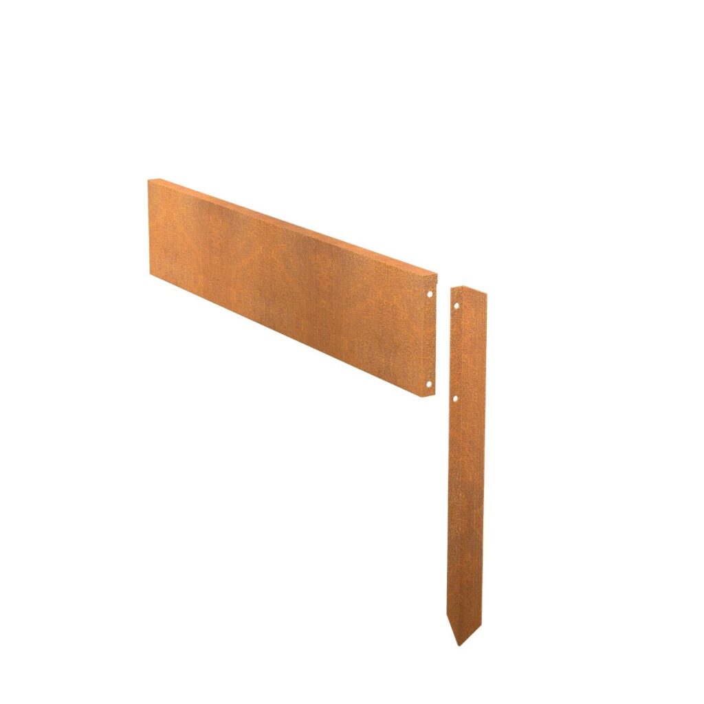 Vores græskant/bedkant med boltesystem i cortenstål tilbyder en elegant og holdbar løsning til at adskille forskellige områder i din have. De skaber skarpe linjer mellem græsplæne, blomsterbede, indkørsel og andre elementer, hvilket giver et velplejet og struktureret udseende.